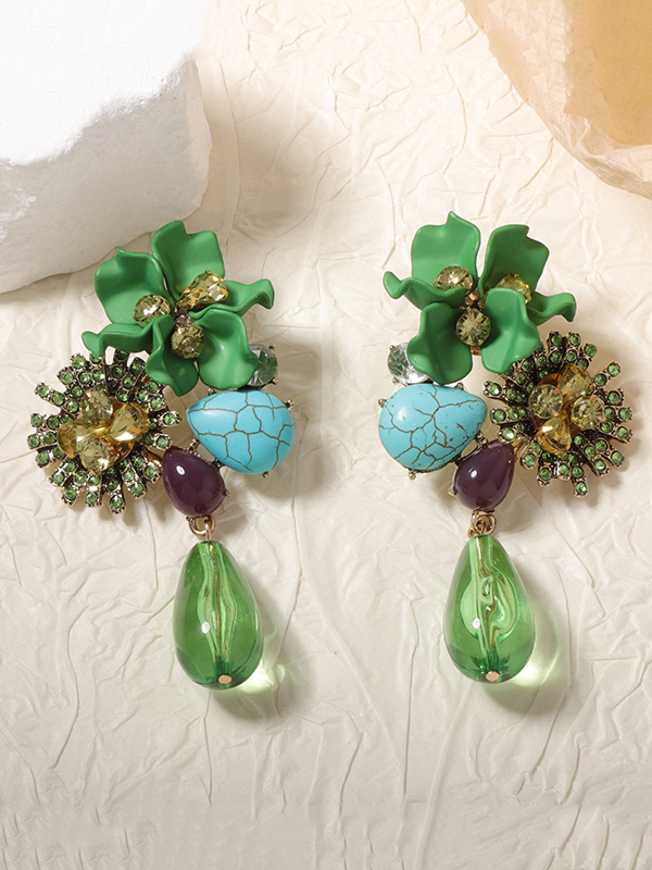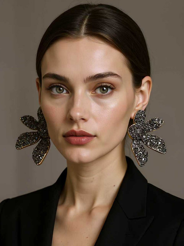 Shiny Rhinestone Geometric Flower Shape Earrings Accessories