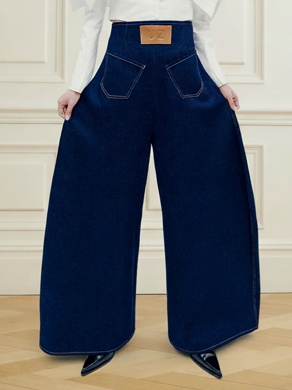 Split-Joint Solid Color Pockets Buttoned Loose High Waisted Jean Pants Bottoms
