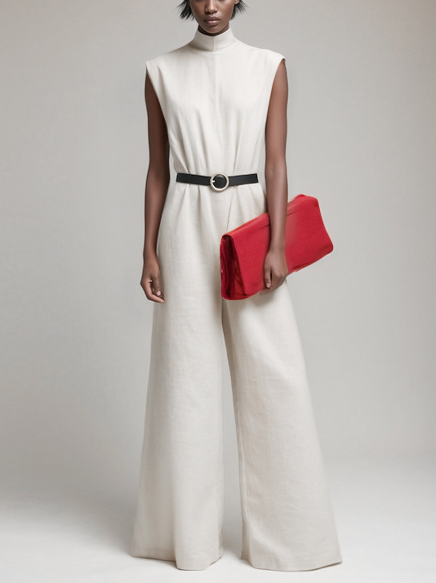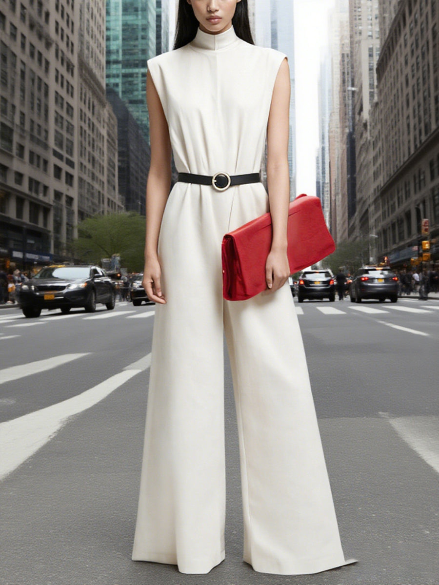Solid Color Backless Wide Leg Sleeveless Halter-Neck Jumpsuits