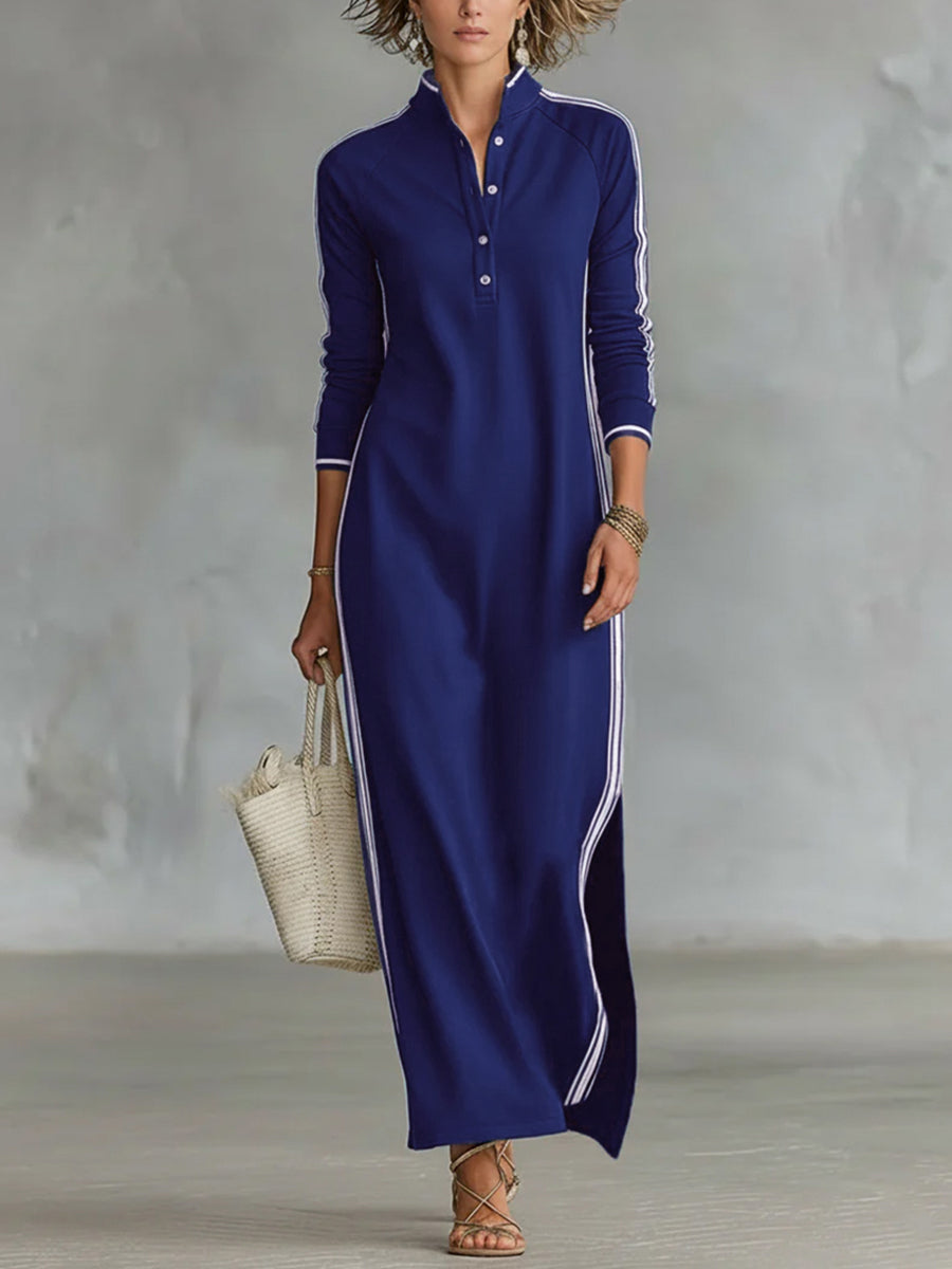 Loose Three-Quarter Sleeves Colorful Contrast Color V-Neck Maxi Dresses