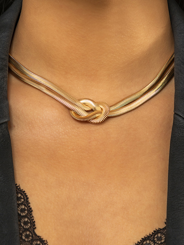 Solid Color Snake Chain Knot Double Layered Necklaces Accessories