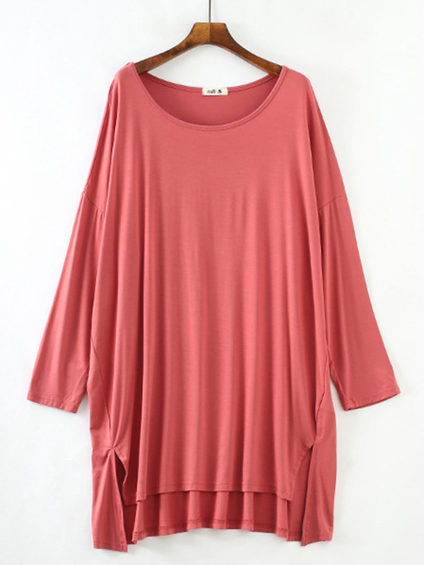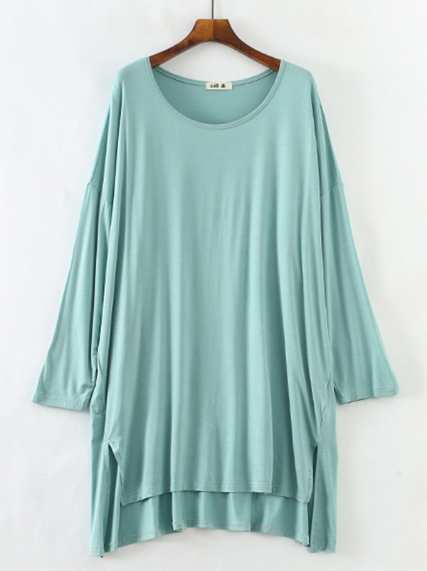 Solid Color Modal Plus Size High-Low Long Sleeve Pajamas Dress