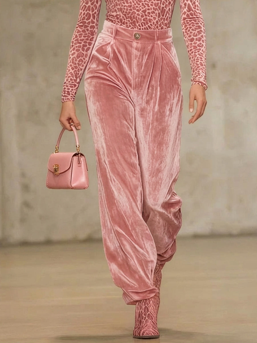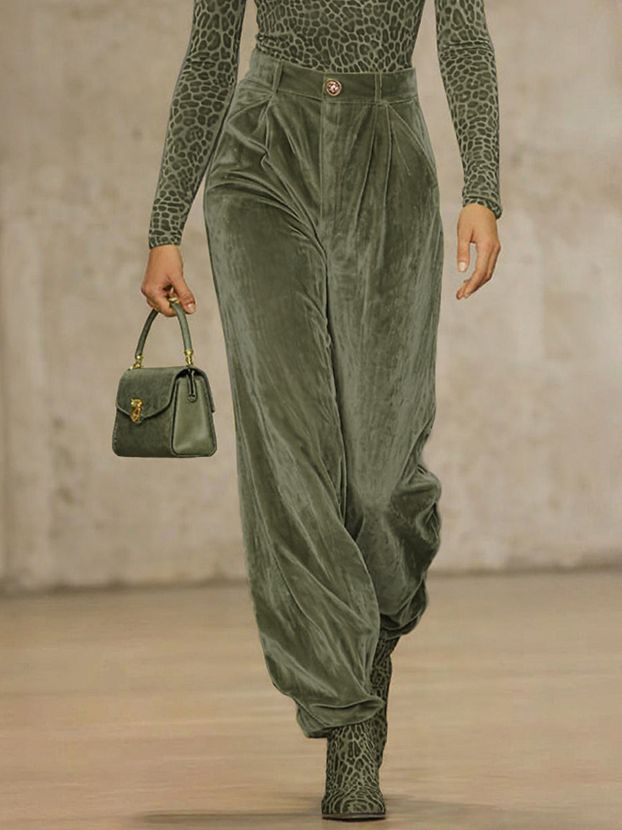 High Waisted Wide Leg Buttoned Pleated Solid Color Split-Joint Zipper Pants Trousers