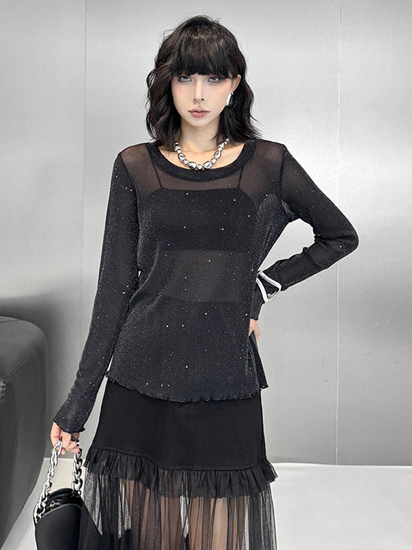 Irregularity Long Sleeves Contrast Color Sequined Shiny Split-Joint Tasseled V-Neck Midi Dresses Sweater Dresses