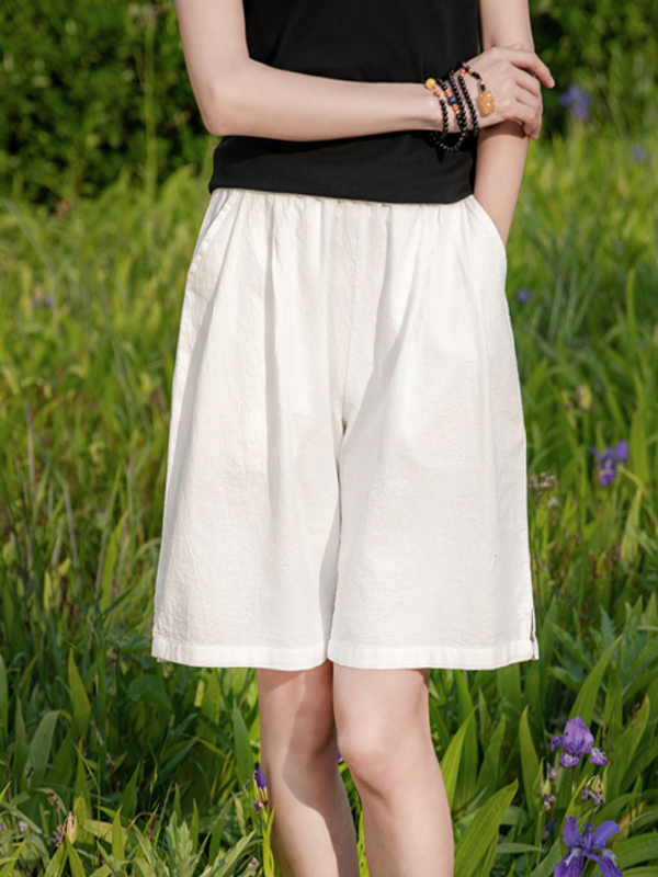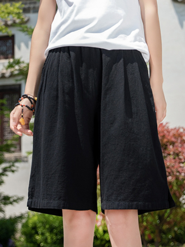 Solid Color Pockets Elasticity Drawstring Buttoned Loose High Waisted Shorts Bottoms