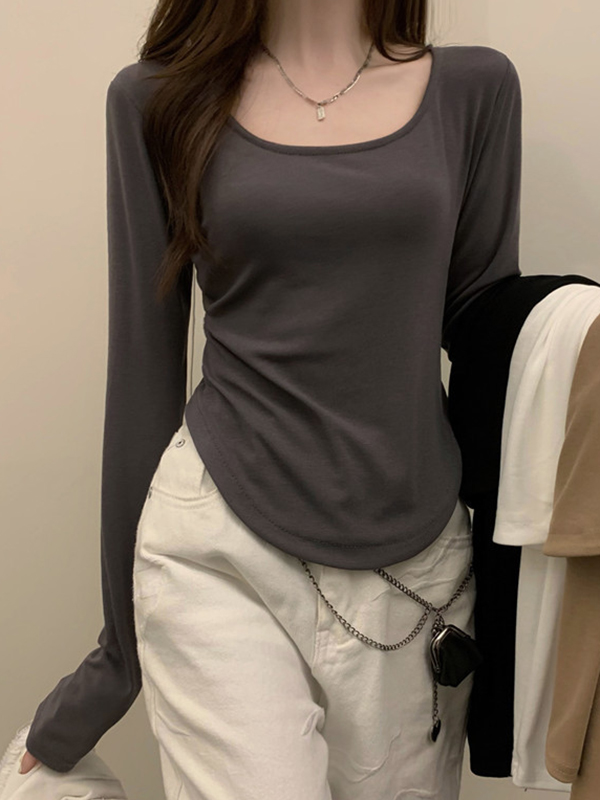 Contrast Color Skinny Short Sleeves Round-Neck T-Shirts