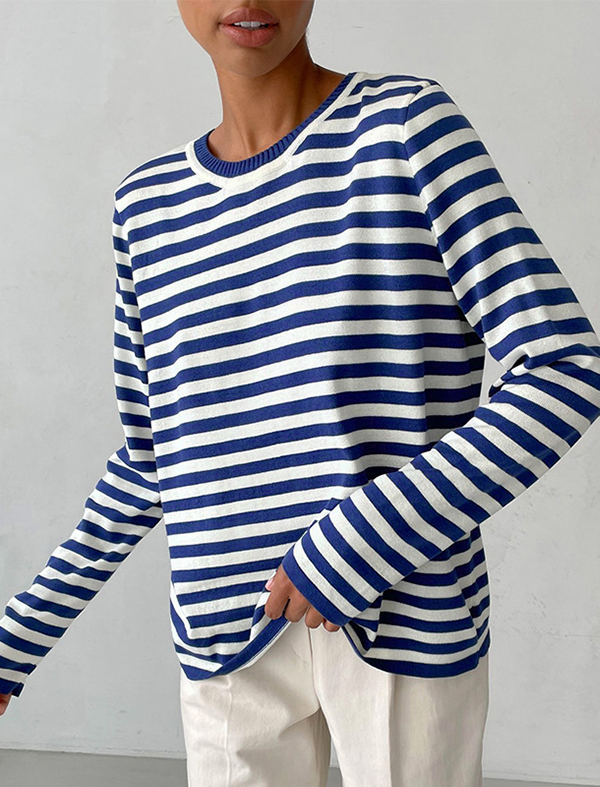 Solid Color Pockets Loose Long Sleeves Round-Neck Sweater Tops Pullovers Knitwear