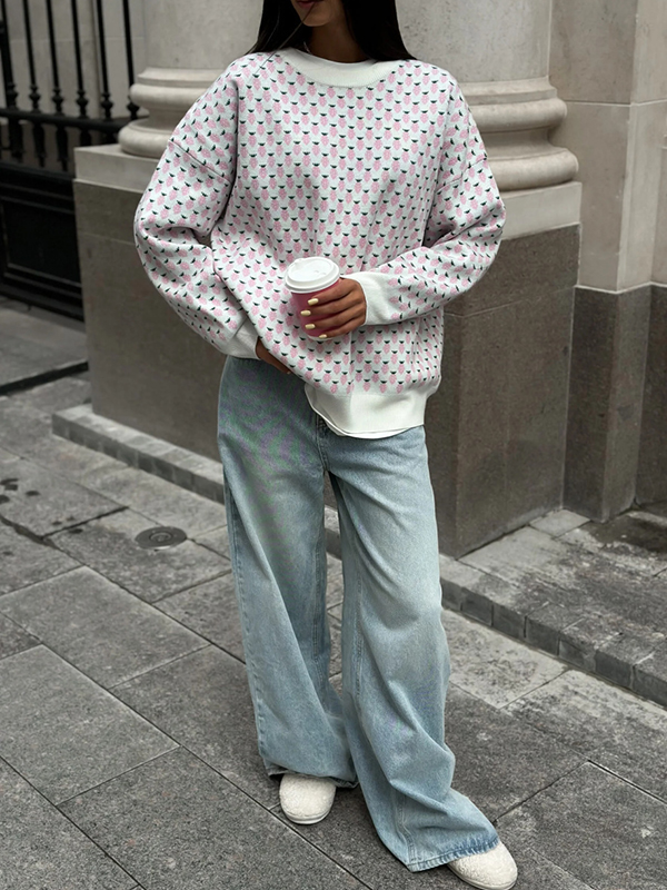 Split-Joint Solid Color Loose Long Sleeves Round-Neck Sweater Tops Pullovers
