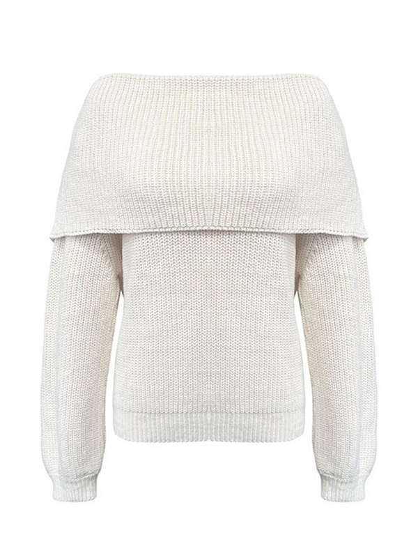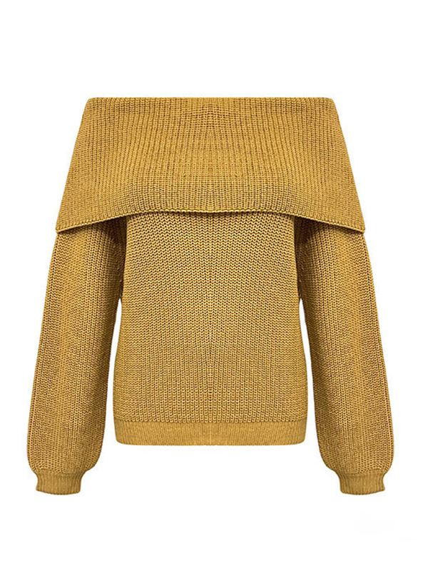 Long Sleeves Loose Buttoned Solid Color Mock Neck Pullovers Sweater Tops