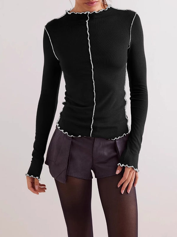 Long Sleeves Skinny Solid Color Mock Neck T-Shirts