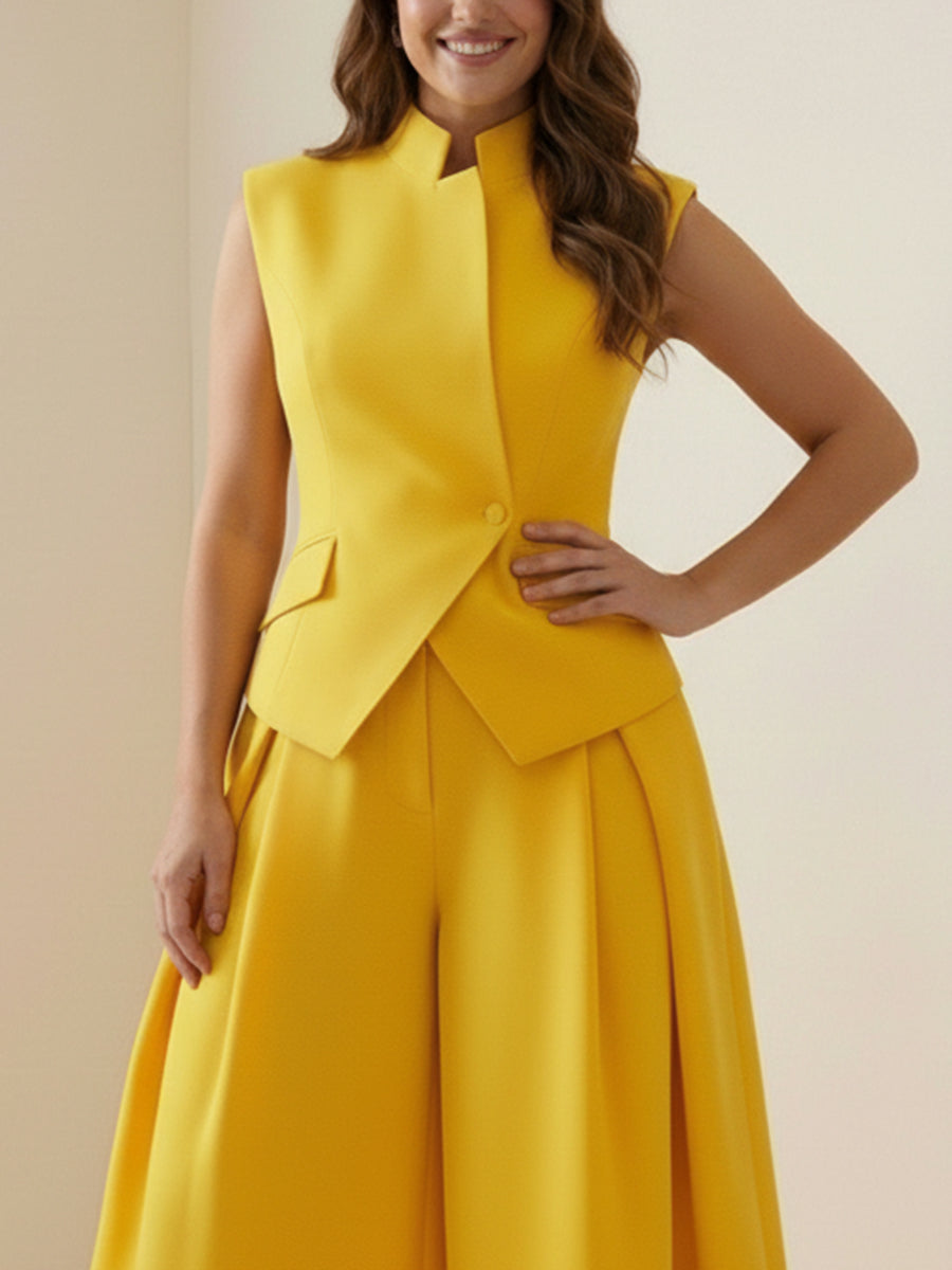 Split-Joint Solid Color Pleated Sleeveless Spaghetti-Neck Camis