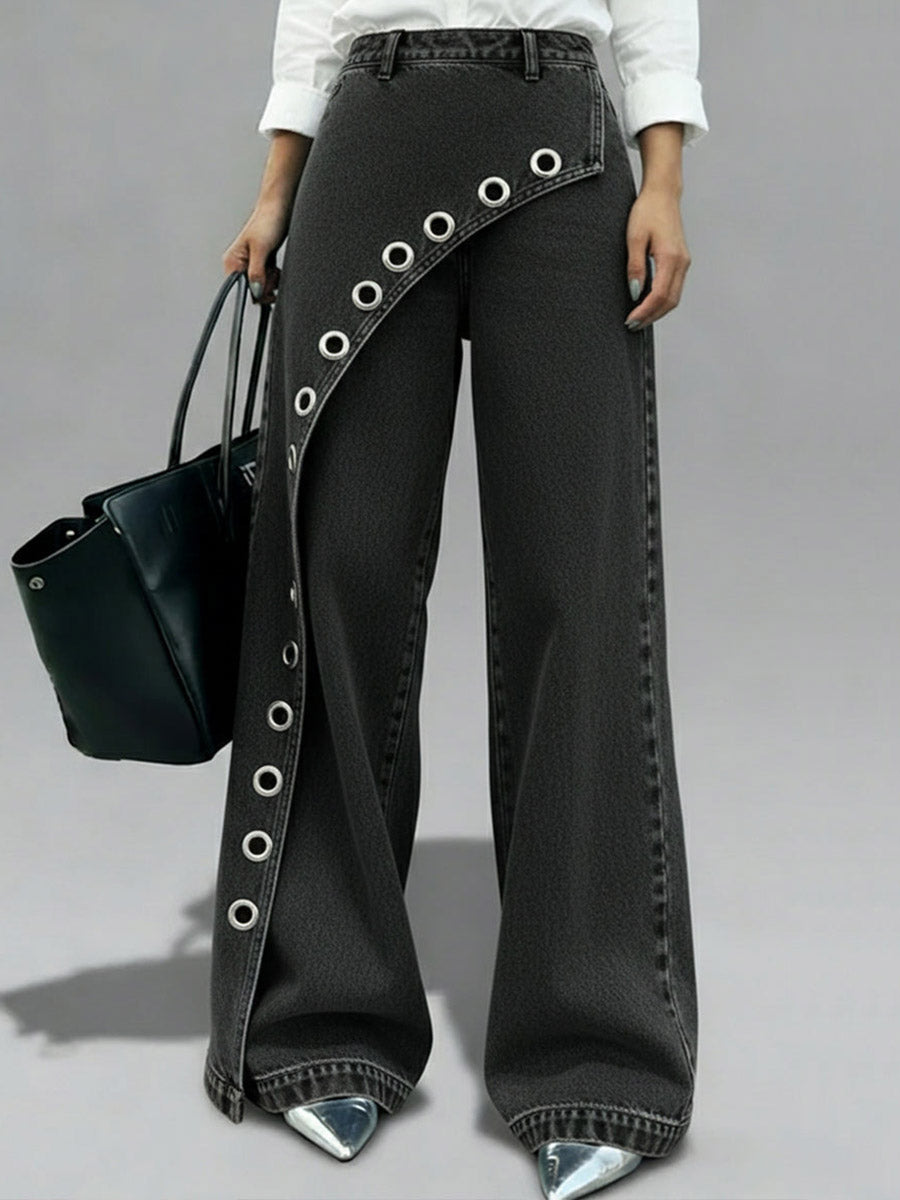 High Waisted Wide Leg Pockets Split-Joint Striped Jean Pants Bottoms Shorts Bottoms