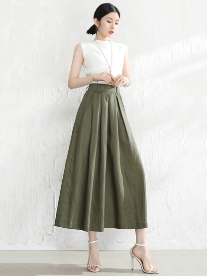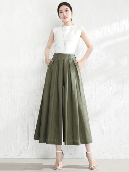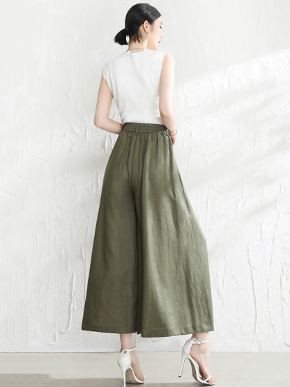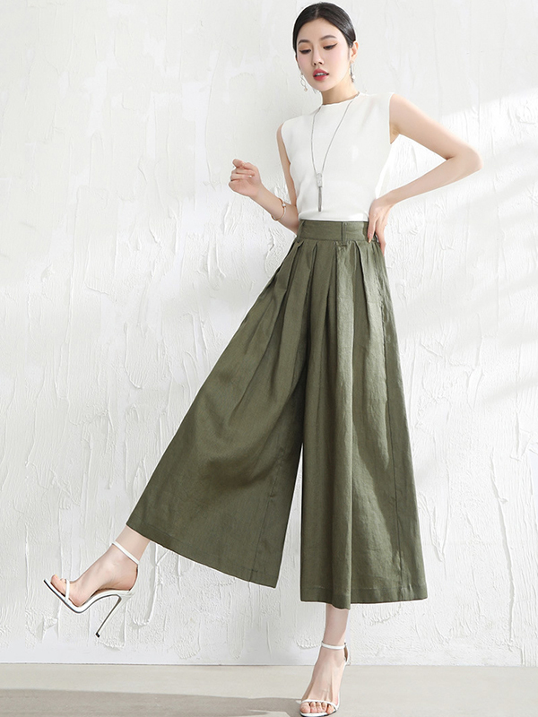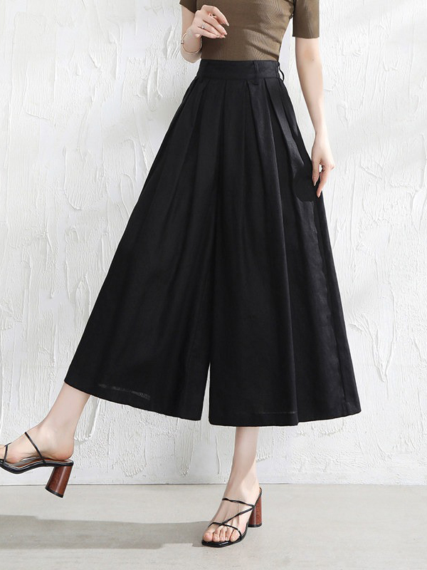 5 Colors Loose Solid Color Ramie Cotton Wide Leg Pants