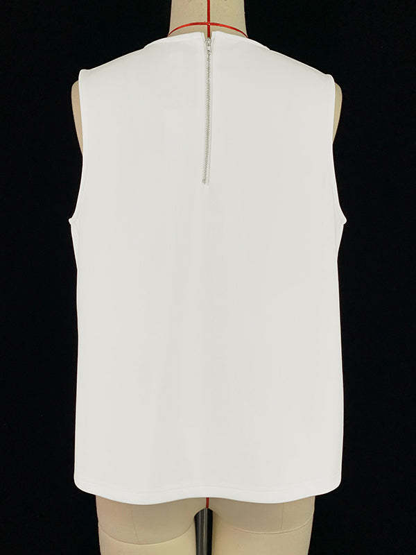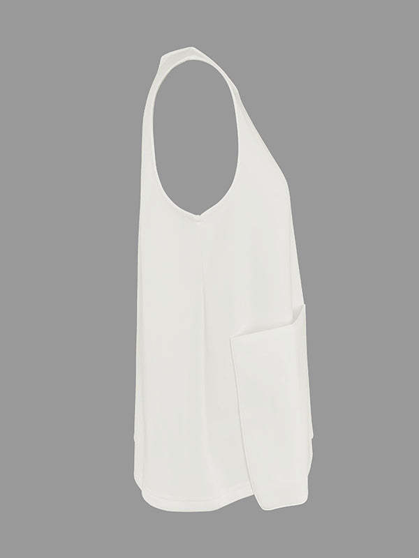 A-Line Loose Solid Color Split-Joint Round-Neck Vest Top