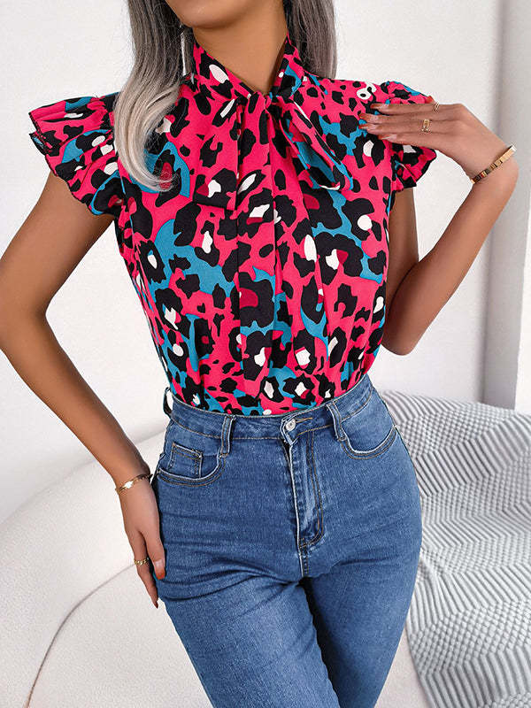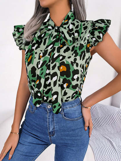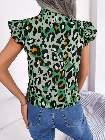 Cap Sleeve Loose Leopard Statement Collar Vest Top