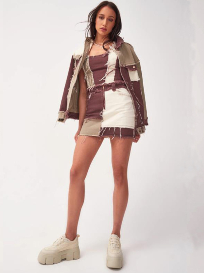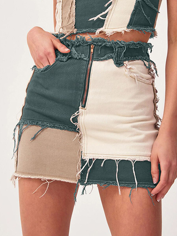 Casual Contrast Color Split-Joint Fringed A-Line Skirts Bottom