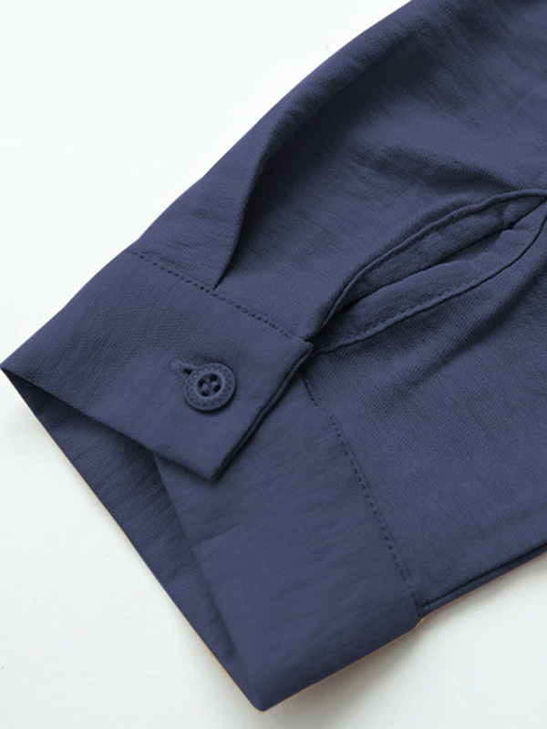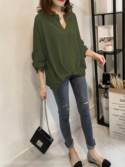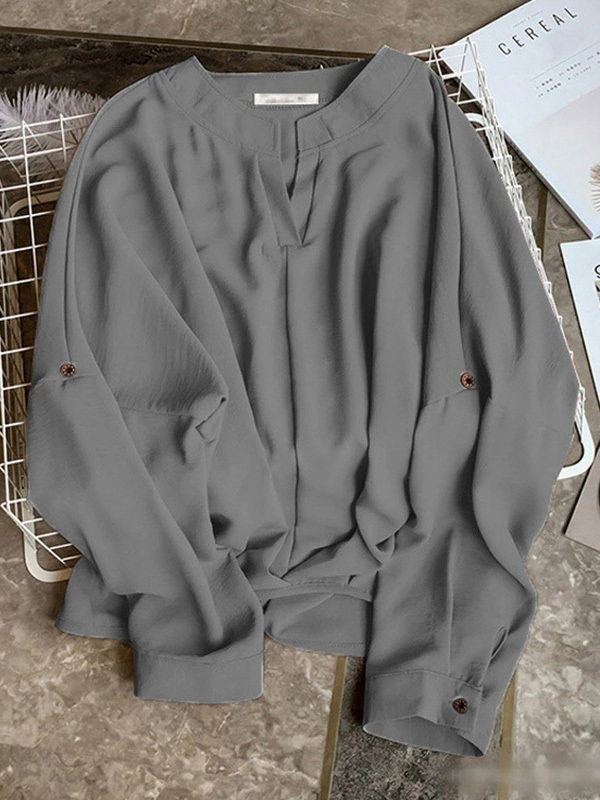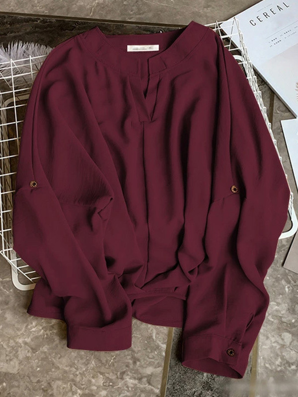 Casual Long Sleeves Loose Solid Color V-Neck Blouses&Shirts Tops