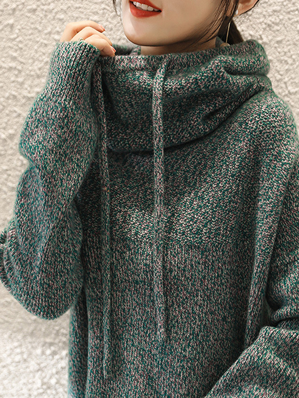 Casual Loose 3 Colors Hooded Long Sleeves Sweater Top
