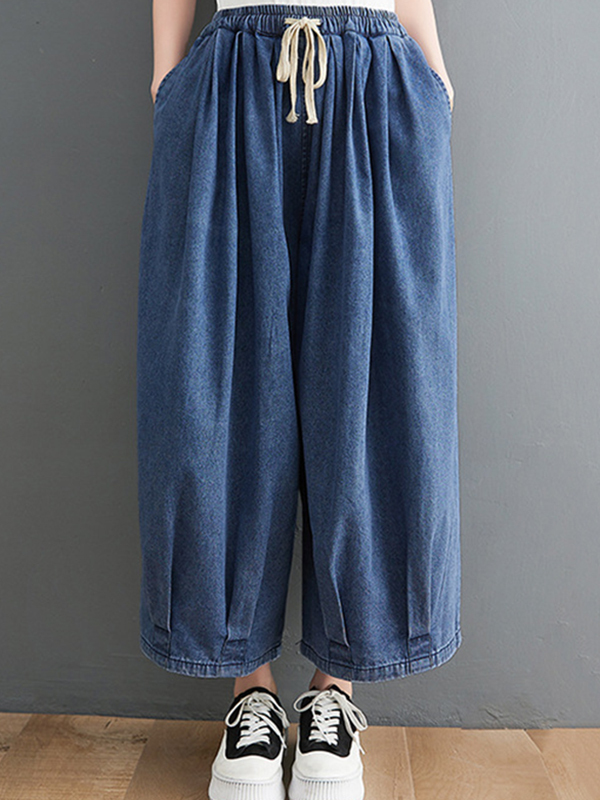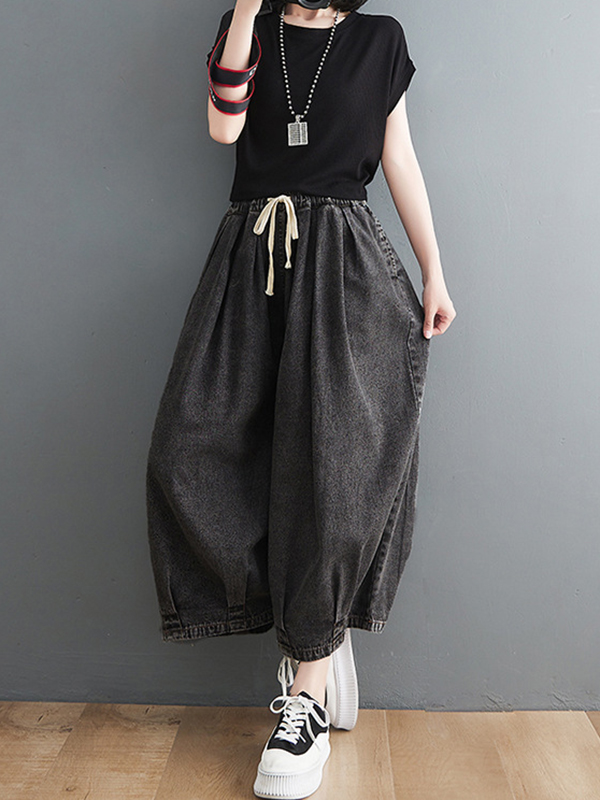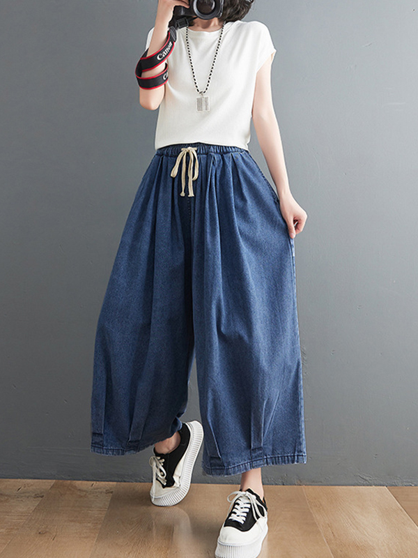 Casual Loose Drawstring Wide Legs Jean Pants