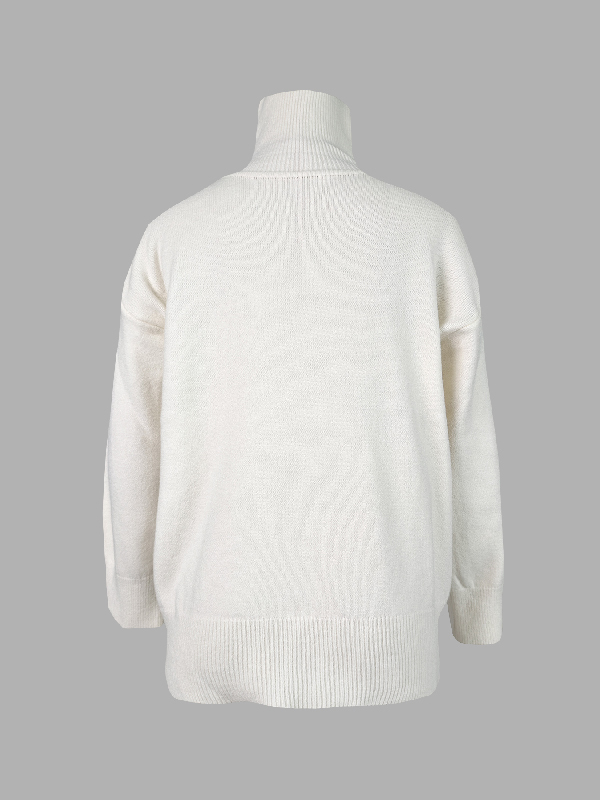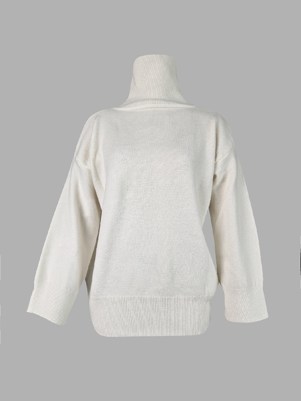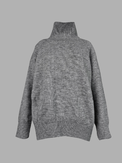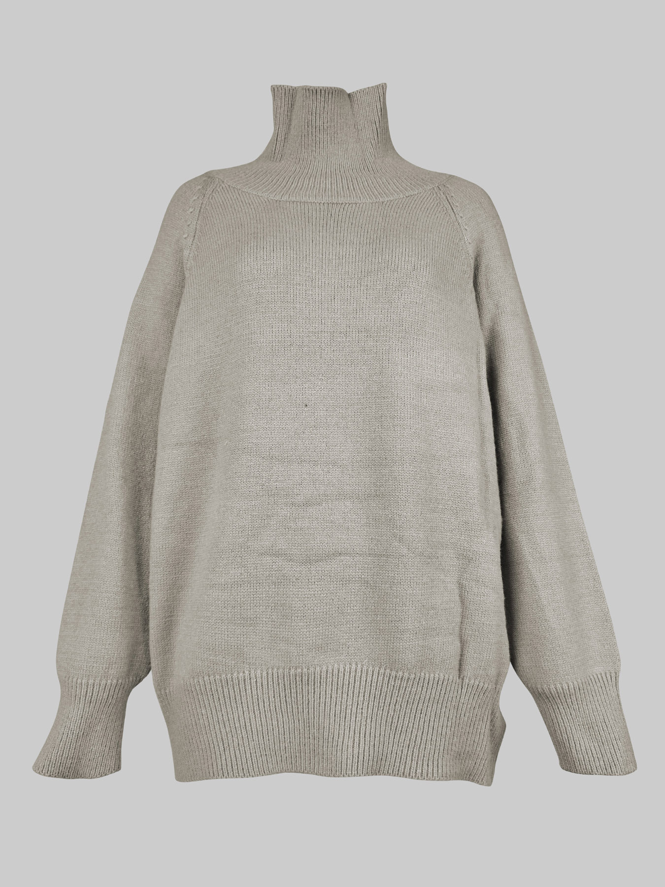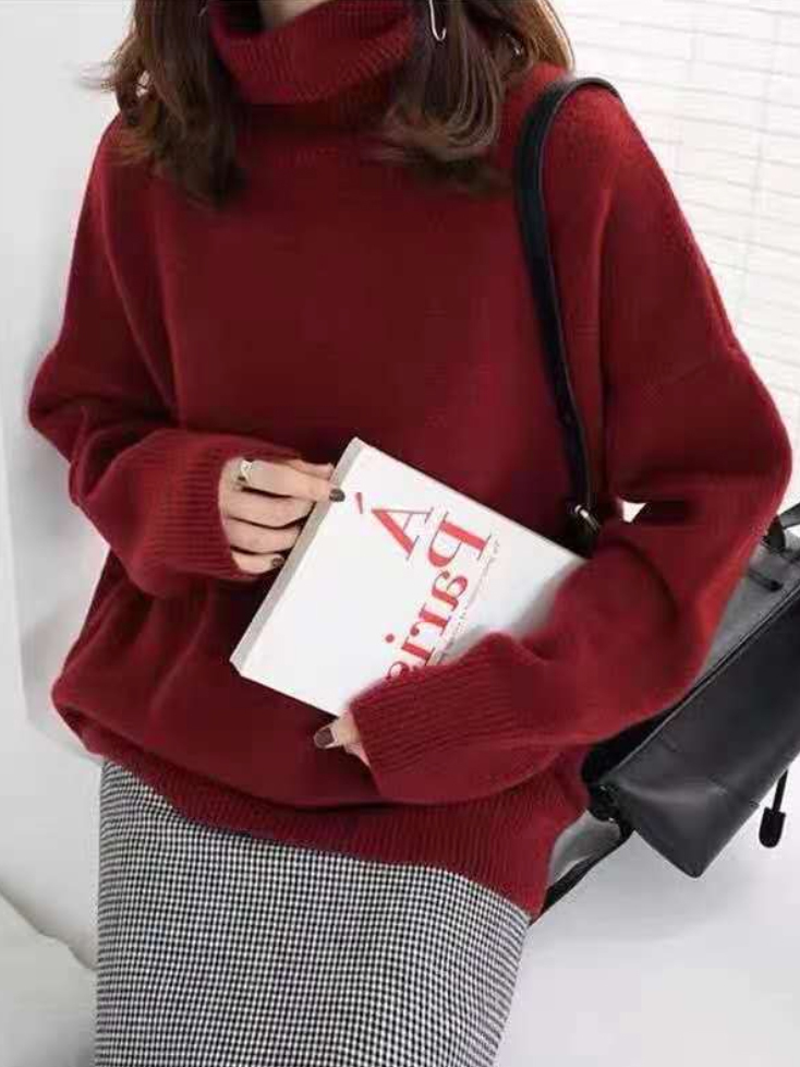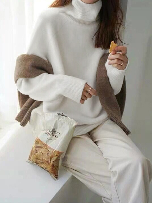 Casual Loose Long Sleeves Solid Color High-Neck Sweater Tops