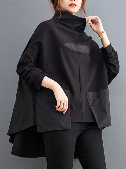 Casual Loose Split-Joint High-Neck Long Batwing Sleeves T-Shirt