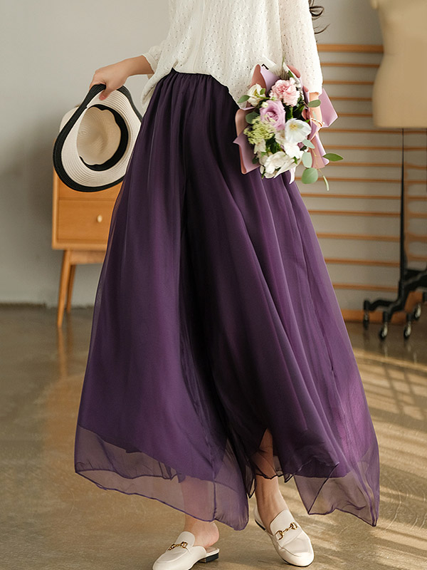 Casual Solid Color Chiffon Column Wide Leg Pants&Skirt