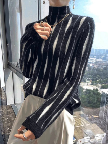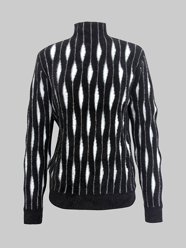 Contrast Color Long Sleeves High-Neck Sweater Tops