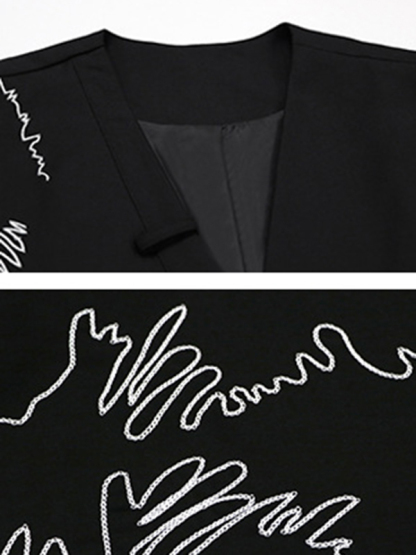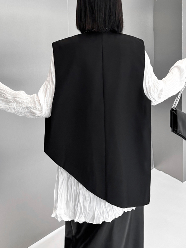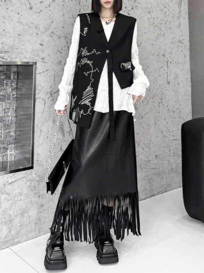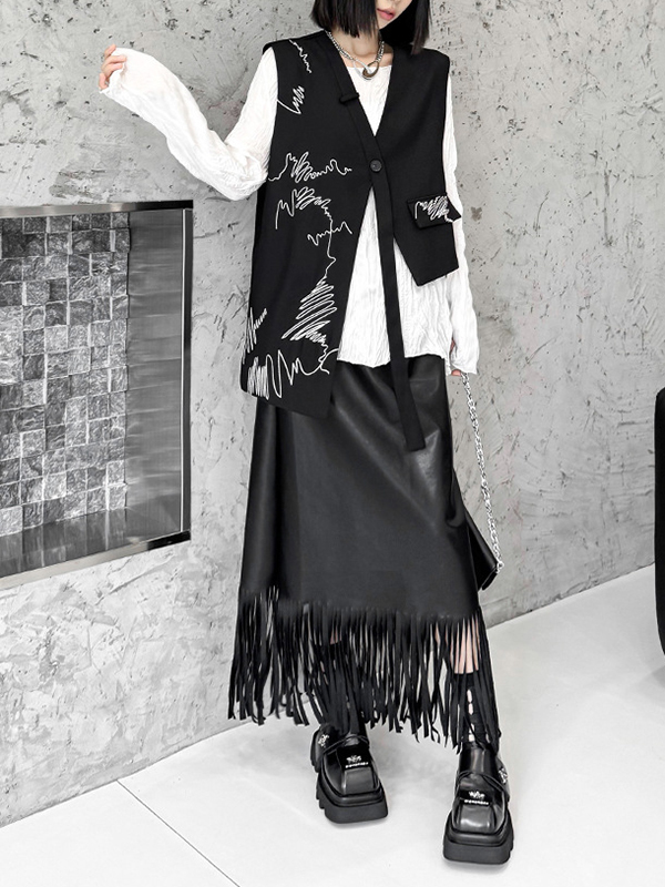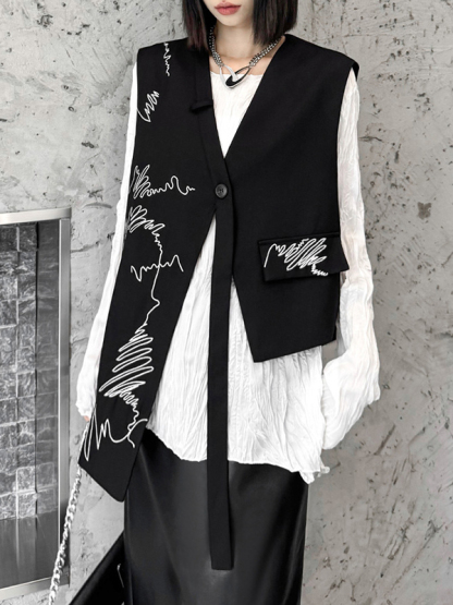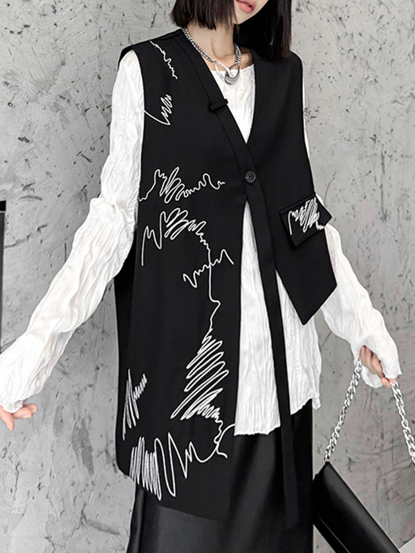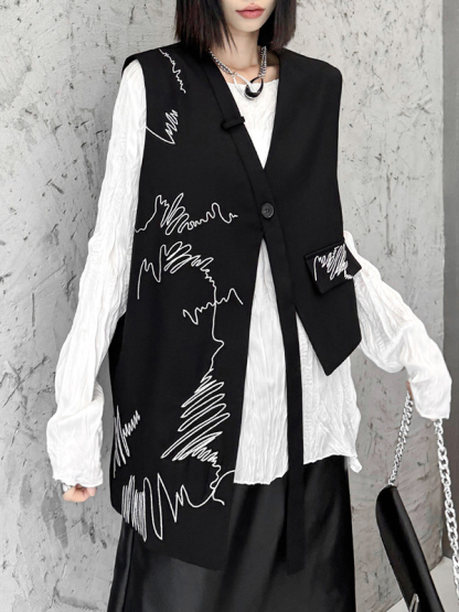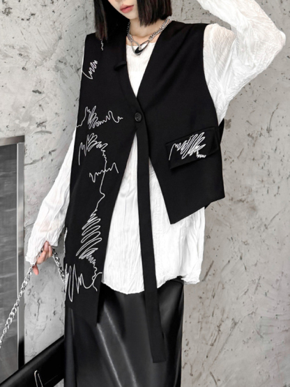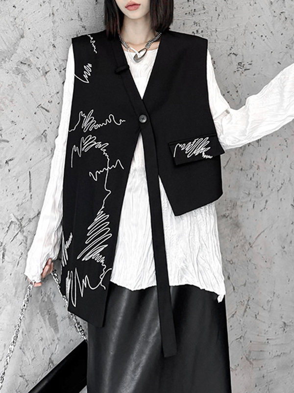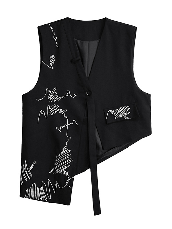 Embroidered Buttoned Asymmetric Sleeveless V-Neck Vest Top