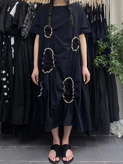 High-Low Loose Pleated Round-Neck Midi Dresses