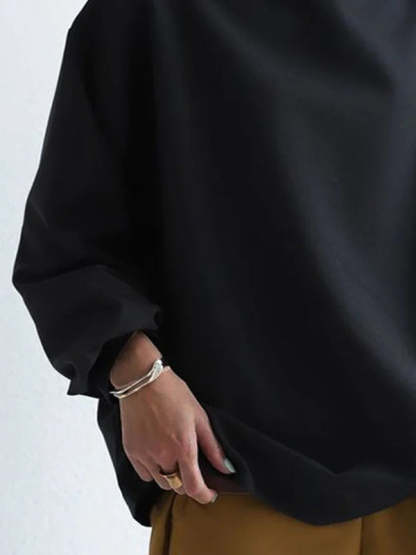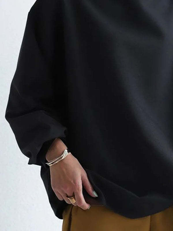 Long Sleeves Loose Solid Color High-neck Sweatershirt