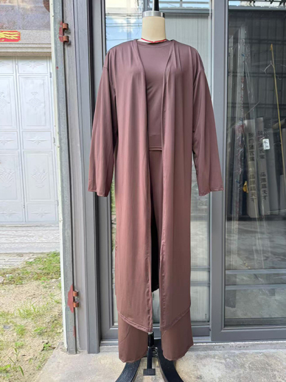 Loose Long Sleeves Cardigan Coat + Round-Neck T-Shirts + Drawstring Elasticity Pants Three Pieces Set