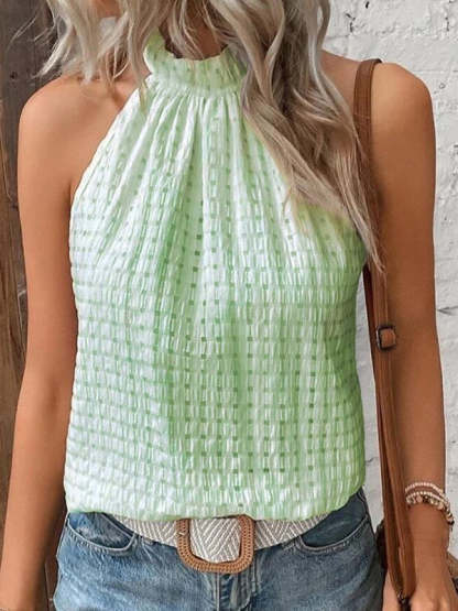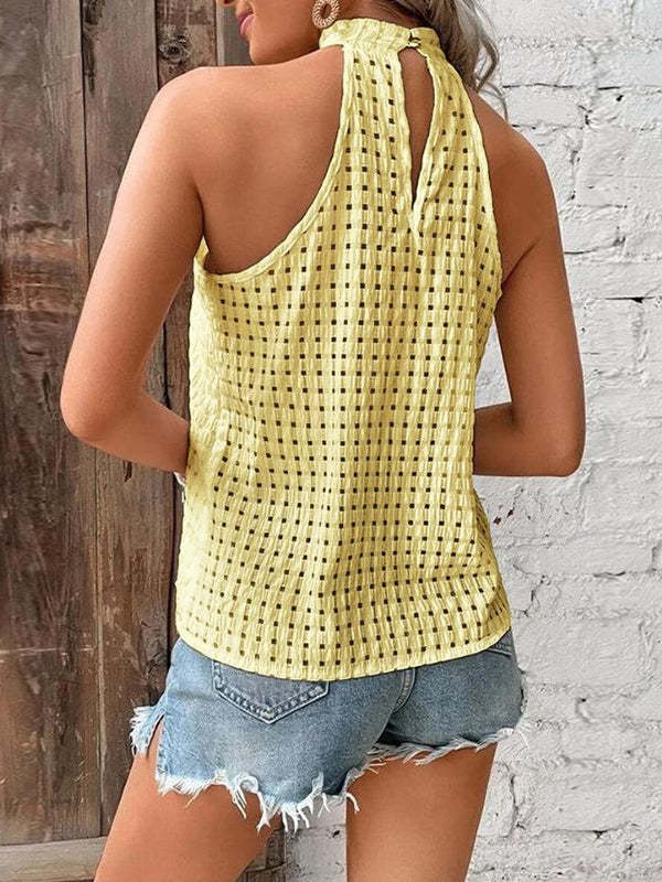Loose Plus Size Hollow Jacquard Pleated Solid Color Halter-Neck Vest Top