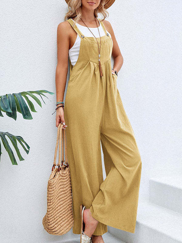 Loose Plus Size Pleated Split-Joint Square-Neck Overalls