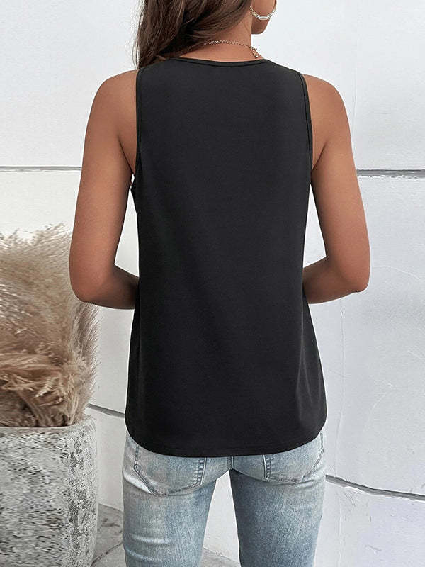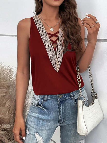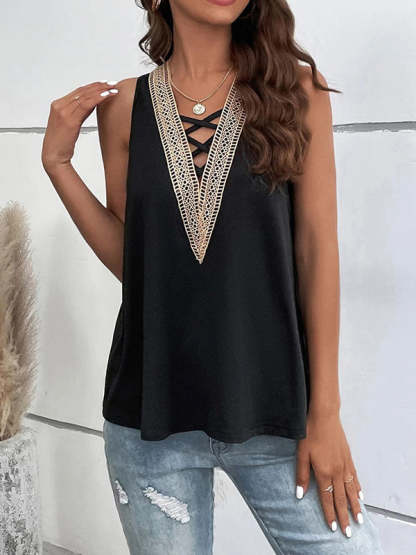 Loose Sleeveless Hollow Split-Joint V-Neck Vest Top