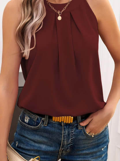 Loose Sleeveless Solid Color Split-Joint Round-Neck Vest Top