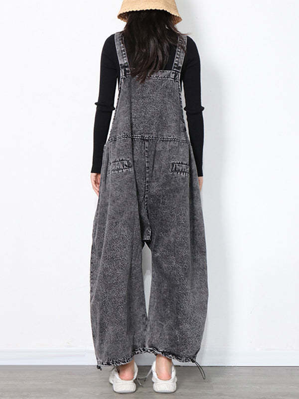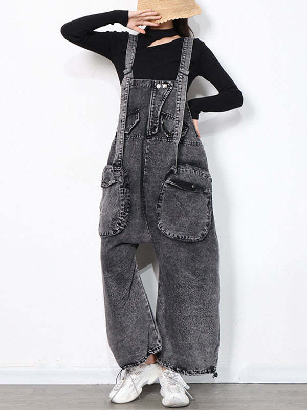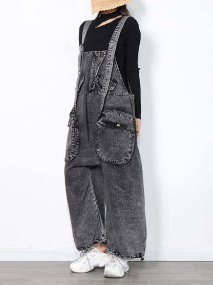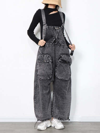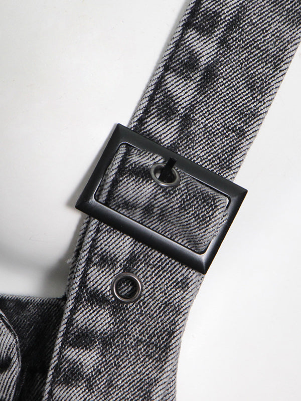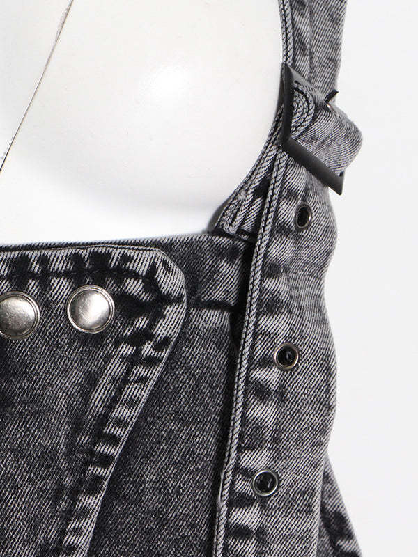Original Cool Denim Split-Joint Square-Neck Overalls