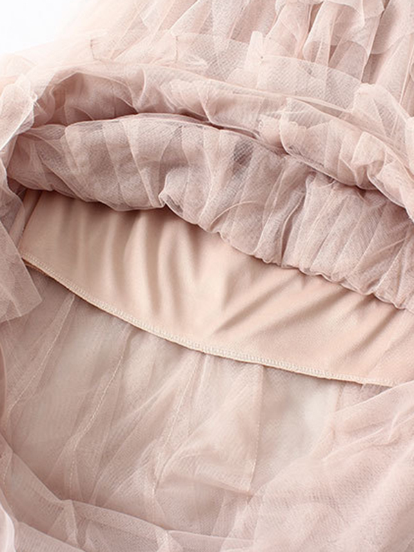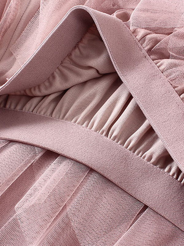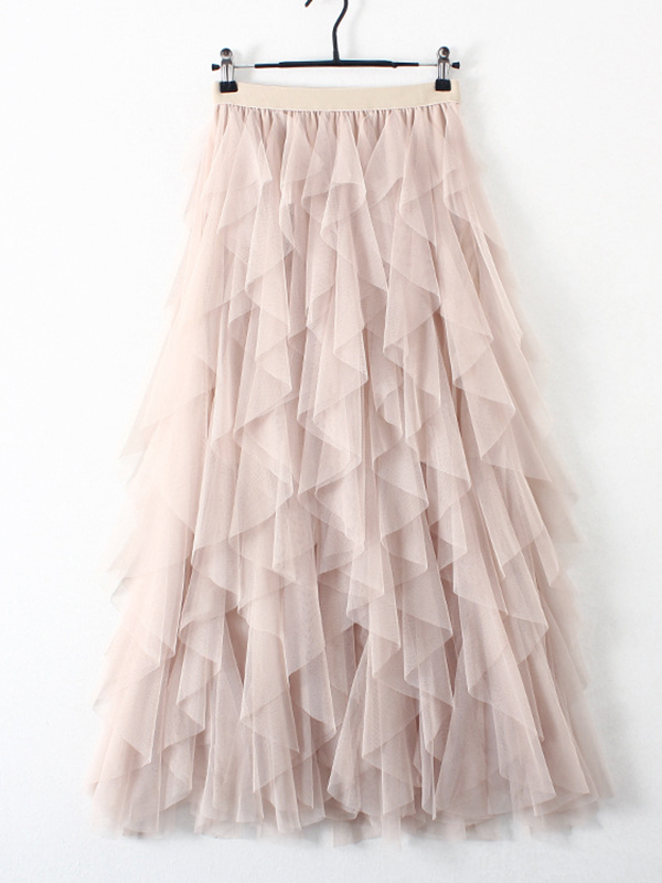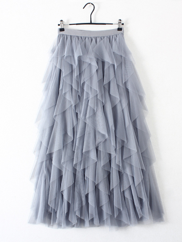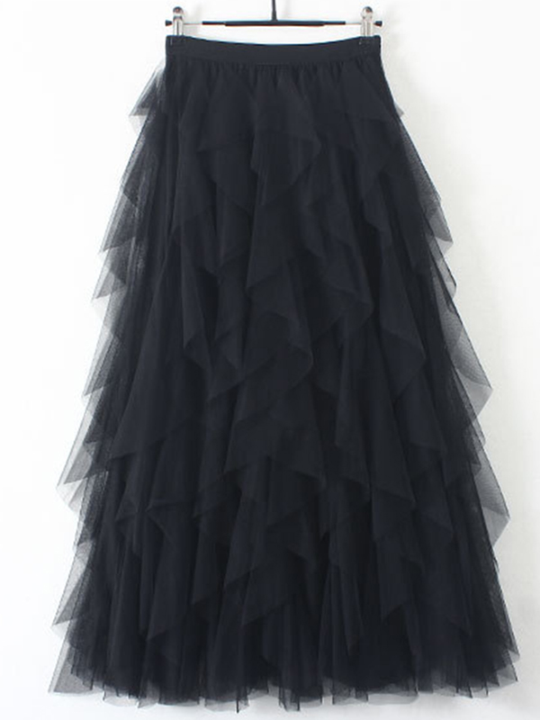 Original Irregular Mesh 4 Colors Falbala Pleated Elasticity Skirt