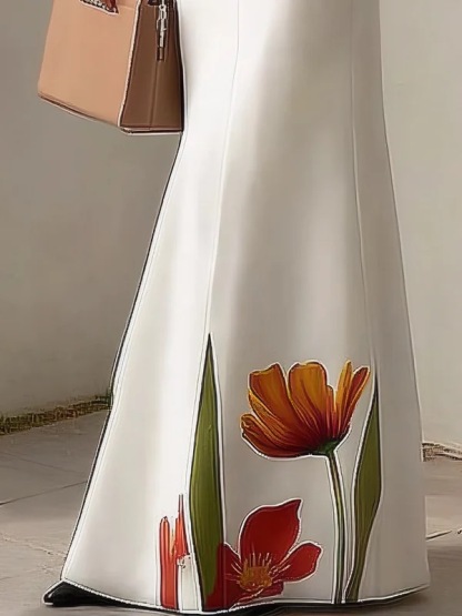 Bodycon High Waisted Flower Print Pockets Skirts Bottoms