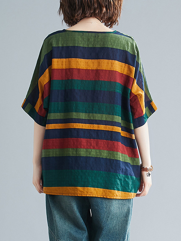 Rainbow Stripe Batwing Sleeves T-Shirts Tops