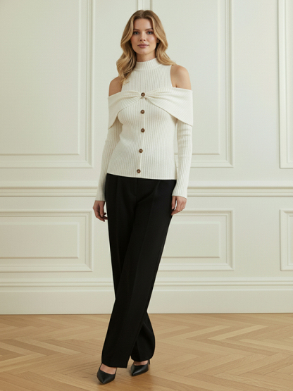 FeatureRibbed Knit , Buttoned , Pleated