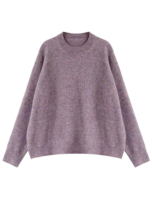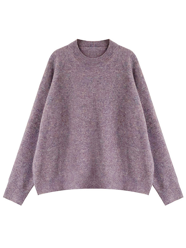 Simple Loose Long Sleeves Round-Neck Sweater Tops Pullovers