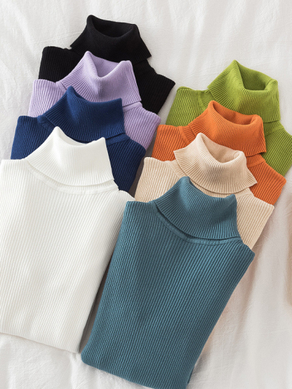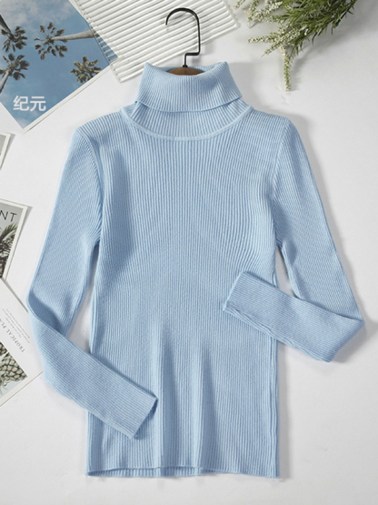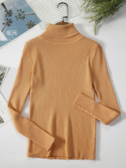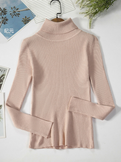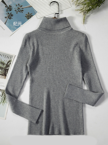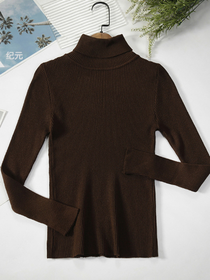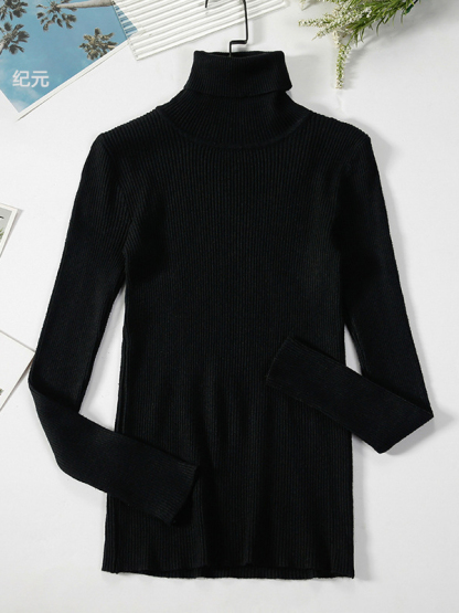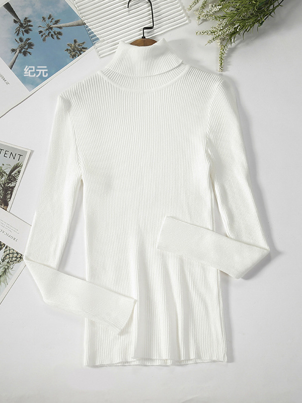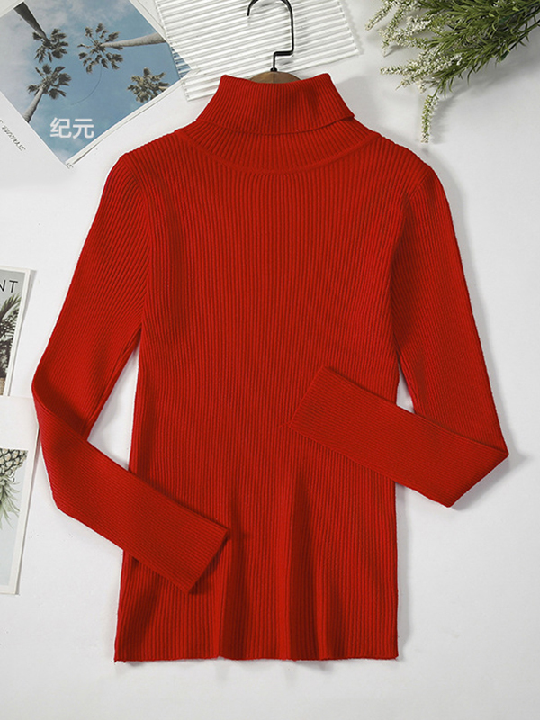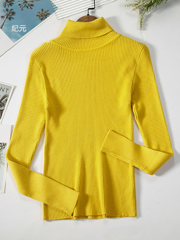 Simple Skinny Solid Color High-Neck Sweater Tops