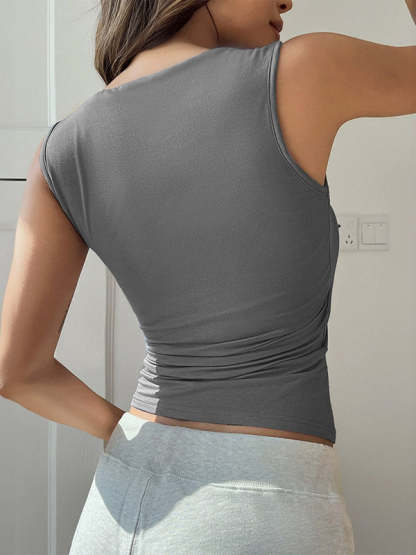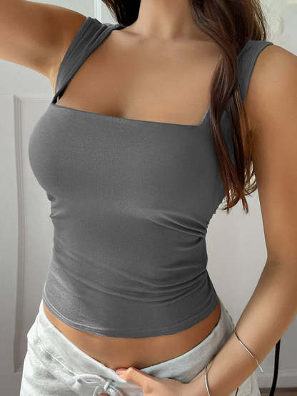 Skinny Sleeveless Solid Color Square-Neck Vest Top