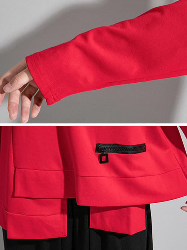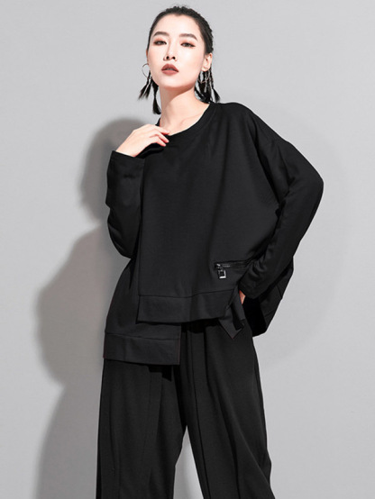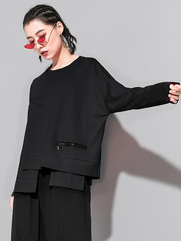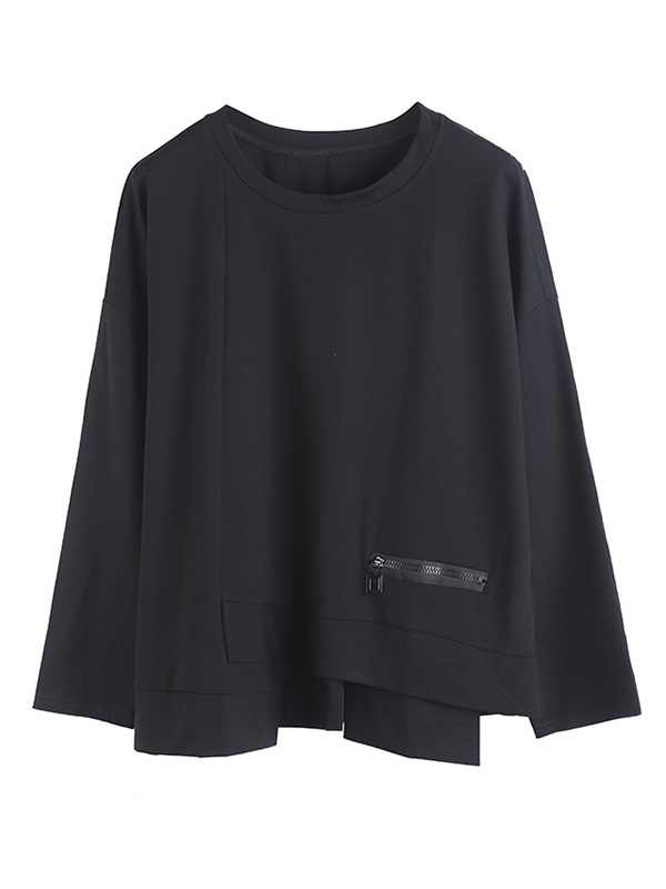 Solid Color Asymmetric Split-Joint Zipper Loose T-Shirt