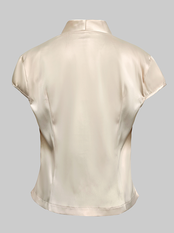 Cap Sleeve Loose Buttoned Solid Color V-Neck Vest Top