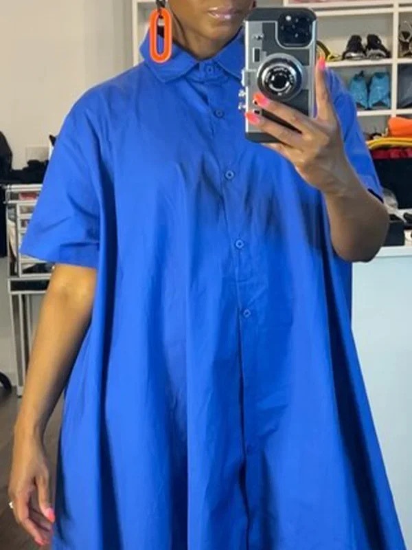 Half Sleeves Loose Buttoned Elasticity Pockets Solid Color Lapel Jumpsuits
