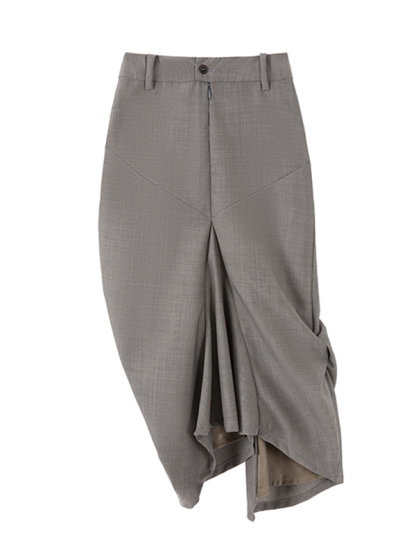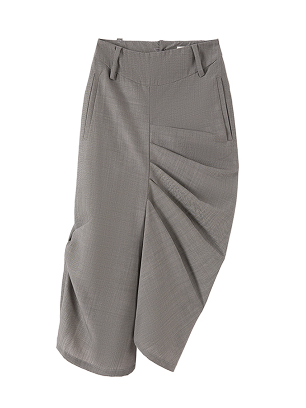 Solid Color Pleated Asymmetric Loose Skirts