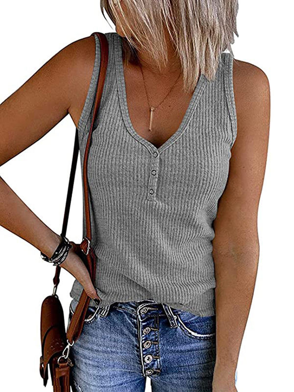 Solid Color Pleated Sleeveless Skinny V-Neck Vest Top