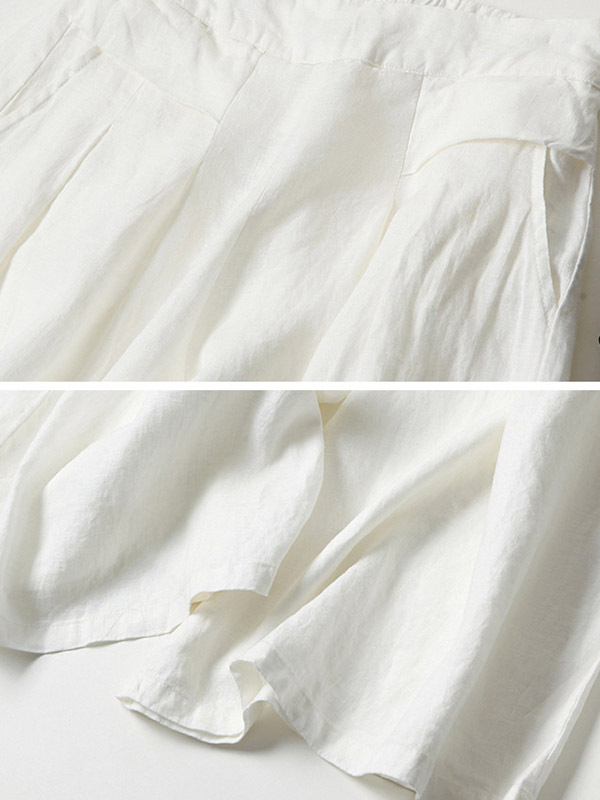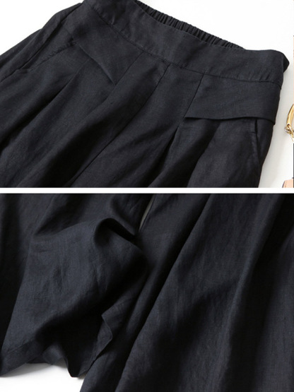 Solid Color Ramie Cotton Plus Size Loose Ninth Wide-Leg Pants