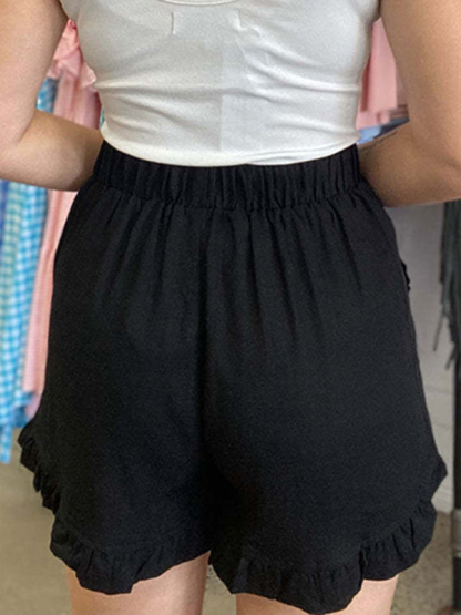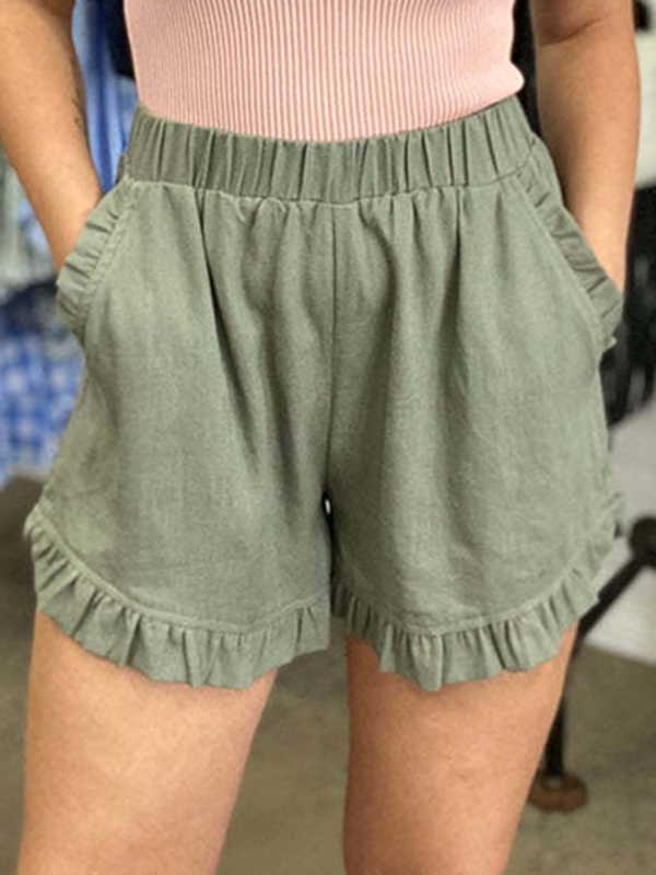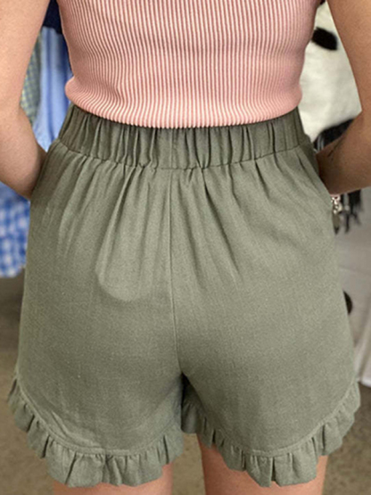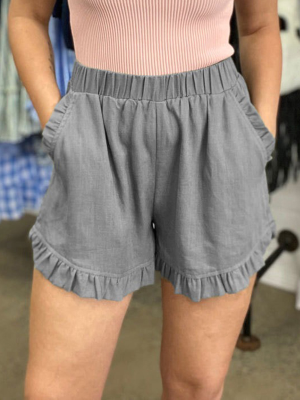 Split-Front Solid Color High-Waisted Elasticity Wide Leg Loose Shorts
